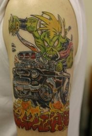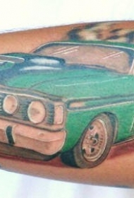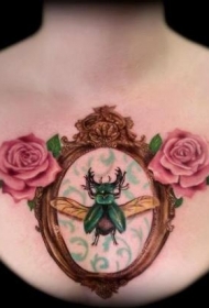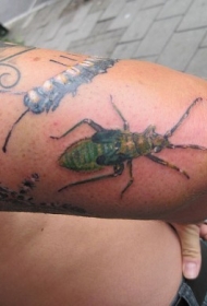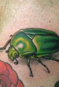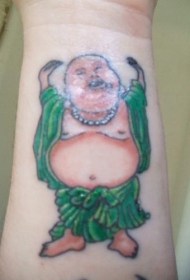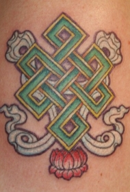 腰部绿色的兔子和蓝色圆圈纹身图案