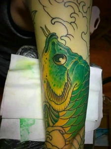 独特的绿色鲤鱼纹身图片很抢眼