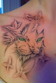 黑灰猫咪和绿色眼睛肩部纹身图案
