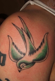 肩部的绿色燕子纹身图案