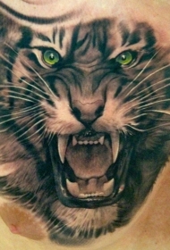 黑色咆哮老虎与绿色眼睛纹身图案