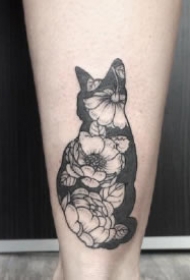 黑猫纹身 一组黑色猫咪和花朵的纹身图片赏析
