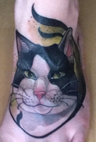 女生脚背上彩绘水彩素描创意可爱猫咪纹身图片