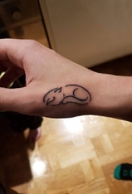 男生手臂上黑色简单抽象线条小动物猫咪纹身图片