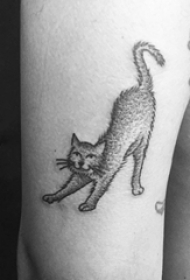 男生手臂上黑灰点刺简单线条小动物猫咪纹身图片