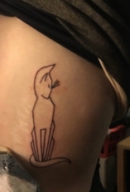男生背部黑色线条有趣俏皮可爱猫咪纹身图片