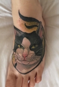 男生脚背上彩绘渐变简单线条小动物猫咪纹身图片