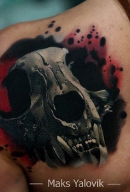 卡通怪兽恶魔猫和燃烧的房屋纹身图案