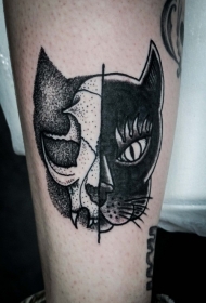 腿部现代风格彩色邪恶的疯狂猫纹身图案