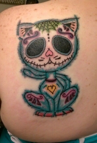 墨西哥风格彩色猫头骨花朵大臂纹身图案
