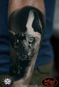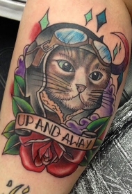 小腿new school搞笑猫腿与玫瑰和字母纹身图案