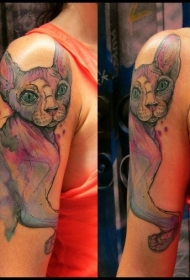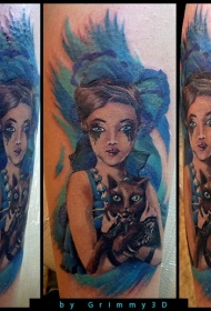 手臂可爱的彩色猫与铃铛花朵纹身图案