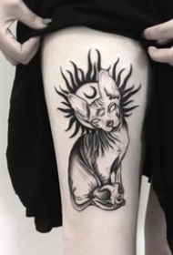 斯芬克斯猫的一组黑灰猫纹身图片