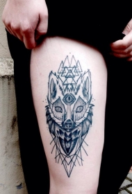 小腿插画风格彩色招财猫和神秘的眼睛标志纹身图案