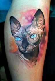 写实风格彩色斯芬克斯猫头像纹身图案