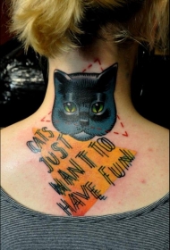 手臂可爱的猫与花朵和蝴蝶纹身图案