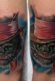 手臂五颜六色的墨西哥卡通猫纹身图案