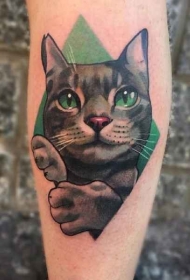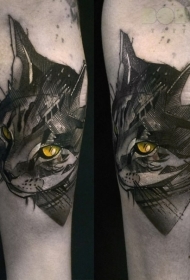 素描风格彩色美丽的猫与心形手臂纹身图案
