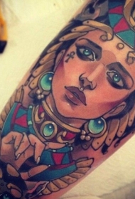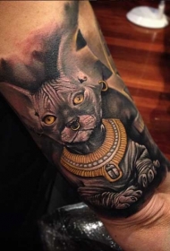 美丽的五彩埃及女人肖像与猫手臂纹身图案