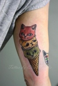 手臂可爱的猫咪头冰淇淋彩色纹身图案