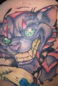 彩色的柴郡猫头像手臂纹身图案