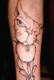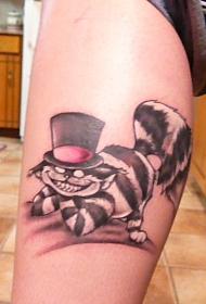 小腿可爱的黑白柴郡猫纹身图案