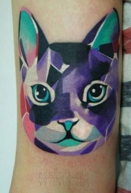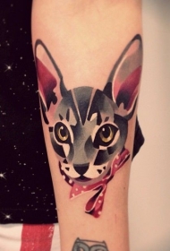 手臂卡通的彩色猫头部纹身图案