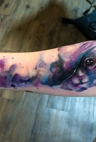 手臂上美丽的水彩色块猫纹身图案