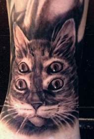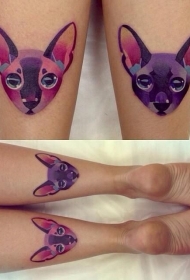小腿水彩画风格猫咪头像彩色纹身图案