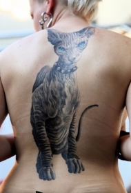 背部写实逼真的彩色无毛猫纹身图案