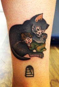 小腿猫和睡觉的小婴儿纹身图案