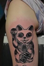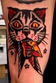 大腿雕刻风格黑色尖叫的女人与猫头纹身图案