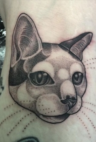 侧肋雕刻风格黑色猫头和骨头纹身图案