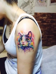 女生手臂可爱的彩绘小猫纹身图案