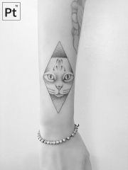 小臂点刺几何猫小清新纹身图案