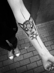 胳膊少女彩色猫骷髅樱花面具纹身图案