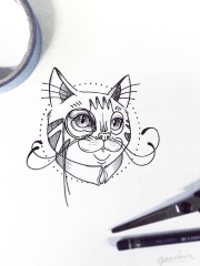 12款漂亮的黑色猫图腾纹身图案手稿素材