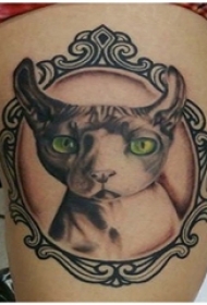 男生大腿上彩绘水彩素描文艺可爱猫咪动物纹身图片
