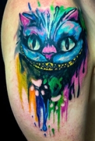 小猫咪纹身 男生大臂上彩色的猫咪纹身图片