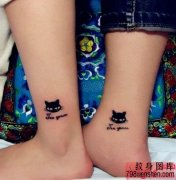 情侣脚部黑色猫咪纹身作品
