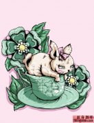 茶杯上粉色猫咪纹身手稿作品
