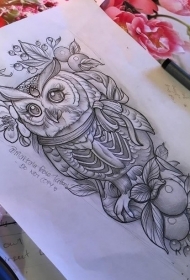 798纹身网猫头鹰手稿图案大全图片