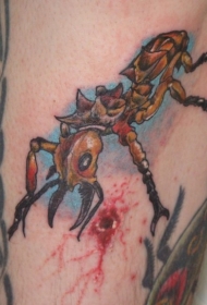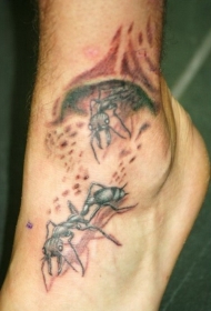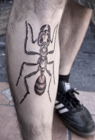 小动物纹身 男生小腿上黑色的蚂蚁纹身图片