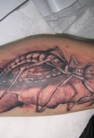 肩部巨大的黑色墨水蚂蚁纹身图案