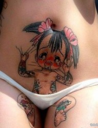 女子腰腹部漫画风格骷髅纹身