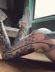 女性的翘臀大花腿纹身图案