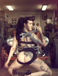 霸气的欧美纹身美女机车修理工