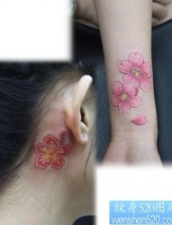 漂亮美臀侧部的小花朵纹身