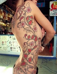 满侧身玫瑰藤蔓刺青欣赏