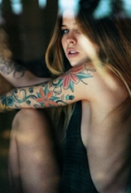 大臂纹身图 女生大臂上彩色的人物肖像纹身图片